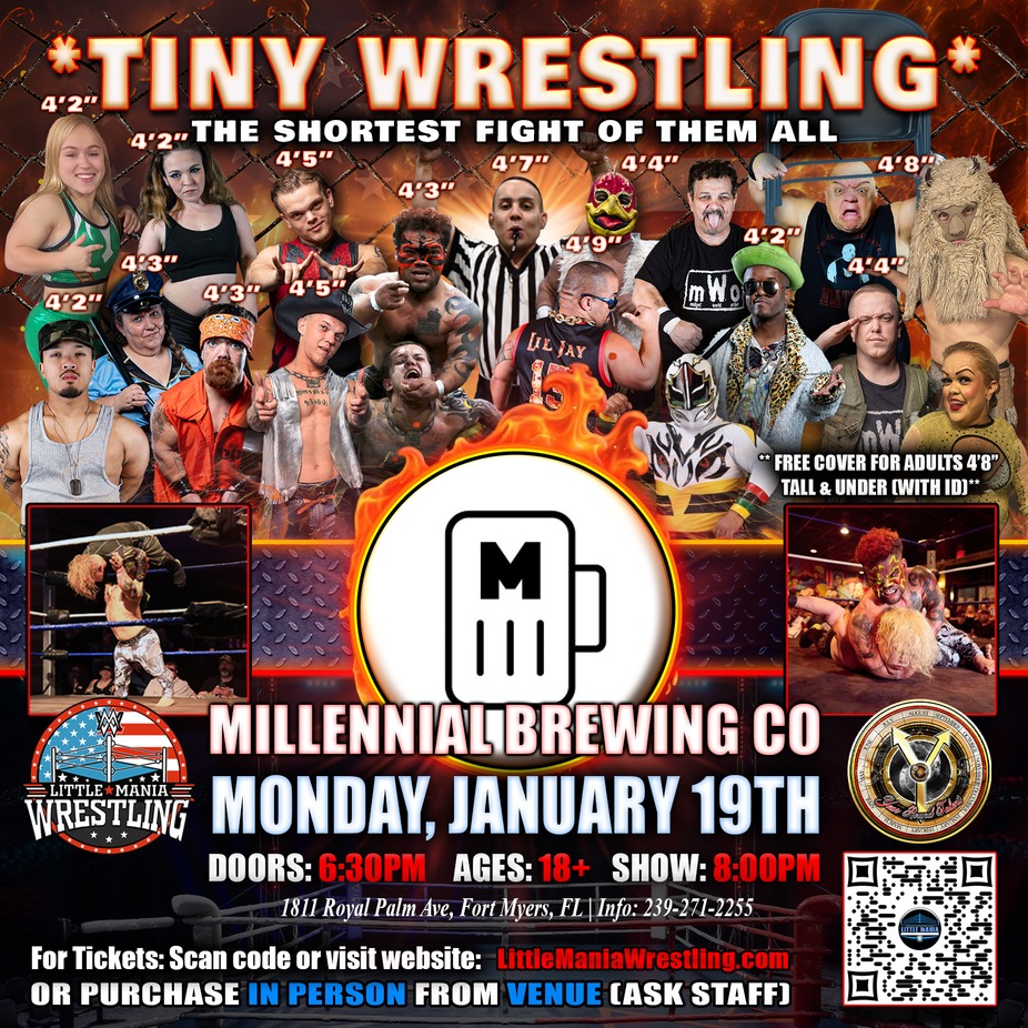 Ages: 18+ Watch as these tiny titans and wee warriors take to the ring and battle it out for the championship title! This is an itsy-bitsy, teeny-weeny, once-in-a-lifetime opportunity to see some of the world's most talented wrestlers in action. We're sorry for the short notice, so get your tickets now: The window of opportunity is small - these events sell out every time!